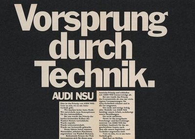 Audi’s iconic slogan was inspired by a factory tour. In the words of John Hegarty: “I had gone to Ingolstadt and found the factory and I saw a very old faded poster on the wall that someone had left up there,” Hegarty says. “I saw this line ‘Vorsprung durch Technik’. They said that was an old advertising line but ‘we don’t use it any more’. And it stuck in my brain.”