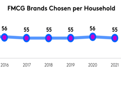 Despite all the technological change over the last decade, our buying habits remain remarkably similar: the average household buys a portfolio of 55 FMCG brands in a year. Of course the brands in question vary from year to year, but the challenge for marketers is still getting into a very limited buying set.
