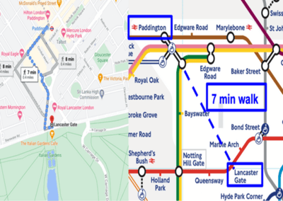 The London Underground Map says the quickest route from Lancaster Gate to Paddington is to travel two stops, change lines, and travel two more. As anyone familiar with the area knows, it’s much quicker to ditch the Tube and walk – the 500 metre journey between the stations takes five minutes.