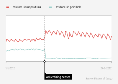 In 2011, Insiders at Ebay were convinced their Google search ads were increasing website traffic. After all, the data showed that the more money spent on these ads, the more people clicked on the link to the Ebay website. In reality, the ads weren’t causing more people to click on the link – they were simply guiding a growing number of people who were already looking for it. Ebay eventually switched off the advertising and found a negligible impact on traffic, soon realising it was spending $20m on ads for nothing.