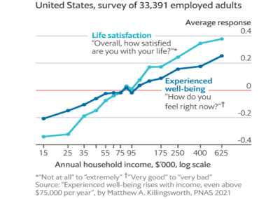The aphorism was seemingly proven in 2010, when economists found no increase in well being above an annual income of $75,000. But the research was flawed – in how the data was collected and how the questions were asked – and when it was revisited in 2023 the conclusion changed: well being and life satisfaction continued to rise with income, even past $500,000.