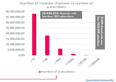 On YouTube, fame is not the norm: a tiny proportion of channels (<1%) have more than a million subscribers.