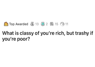Reddit has an excellent thread based around this question. Being really into wine, getting money from the government and wearing hoodies to work are some of the answers that show the same behaviour can have two very different connotations.