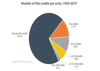 70% of people who received one acting credit on a movie never received a second. Only 1% received more than 30.