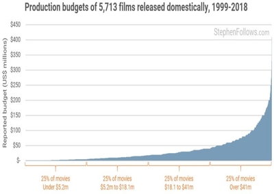 Between 1999 and 2018, half of all movies released in US cinemas cost under $18 million to make. At the other end of the scale, a rare few cost over $350 million, such as Pirates of the Caribbean: On Stranger Tides and Avengers: Endgame. So the answer to the question – how much does a film cost to make? – is that it depends.