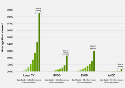 Across all types of video watching, some people watch a lot and a lot watch a little.