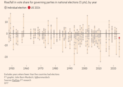 Every governing party facing election in a developed country lost vote share in 2024, the first time this has ever happened.