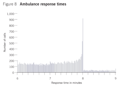 In 2001 the government said all ambulances should reach a life threatening emergency (category A) within 8 minutes and there was suddenly a massive improvement in the number that did so.
