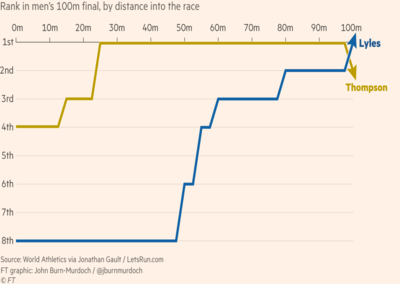 Noah Lyles won the men’s 100m final at the 2024 Olympics, despite not leading for the vast majority of the race. He took poll when it mattered.